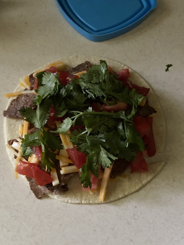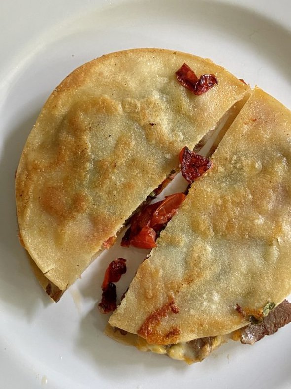 I also used some leftover meat to make a taco-ish quesadilla for breakfast.