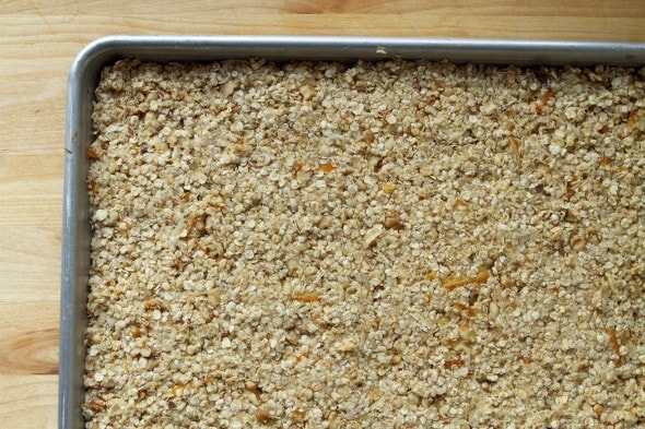 Spread oats mixture into greased half-sheet pan. Bake for 15-20 minutes, or until edges are lightly browned.