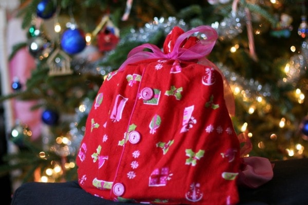 Do you know what’s really lovely about cloth gift bags? Once you have them made, the wrapping process is SO easy.