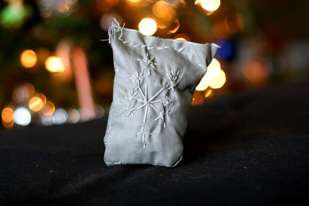 If I had it to do over again, I’d have place the embroidered stars lower on the bag, because once you put something in the bag and tie it up, the stars are decidedly not centered anymore.