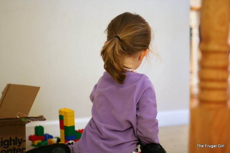 Last year I bought Duplos for Zoe on e-bay, and Sonia got a ton of new-in-the-package bath goodies from Goodwill.