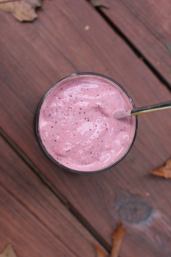smoothie, comprised of homemade yogurt (made with Aldi milk) and frozen Aldi fruit