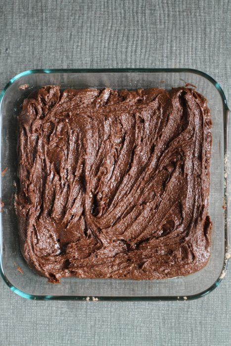 Pour/scrape the batter into a greased 8×8 inch baking pan: