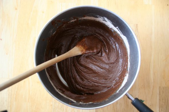 The original recipe says to use a wooden spoon, which I dutifully do. A metal spoon probably won’t ruin your brownies, though!