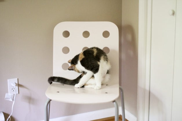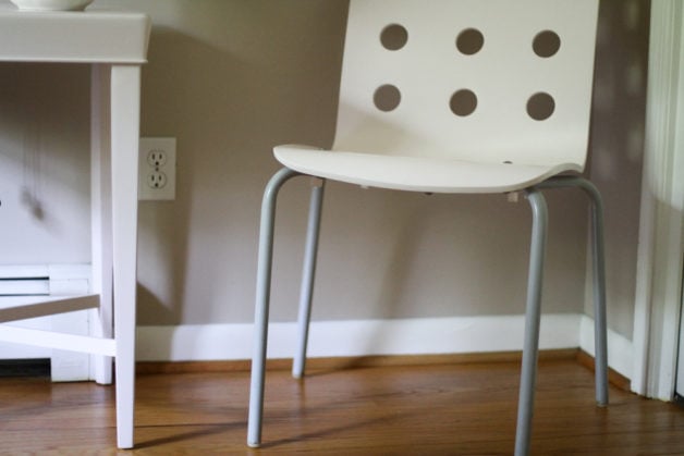 Since I already did all the messy hard work of getting this chair into better shape, it would be very easy to change the color in the future! I could just take off the legs and then roll a new color onto the seat.