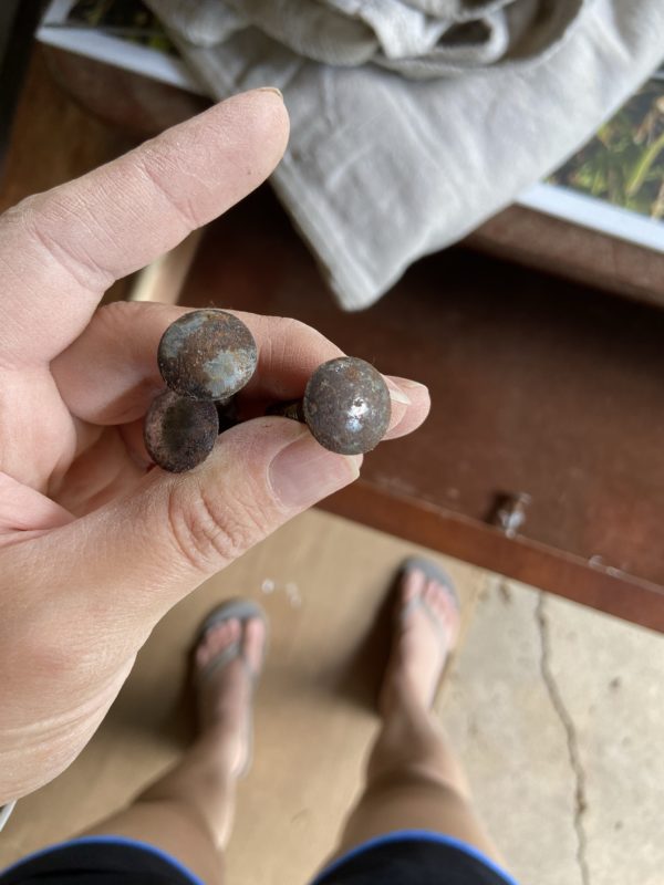 The metal screws were pretty rusty, so I sanded them down with my orbital sander to get the rust off.