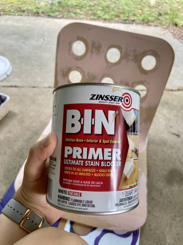 I could not go straight to a water-based primer because the paperboard material would just soak all that liquid right up. And that would be a speedy trip back to Lumpy Chairville.