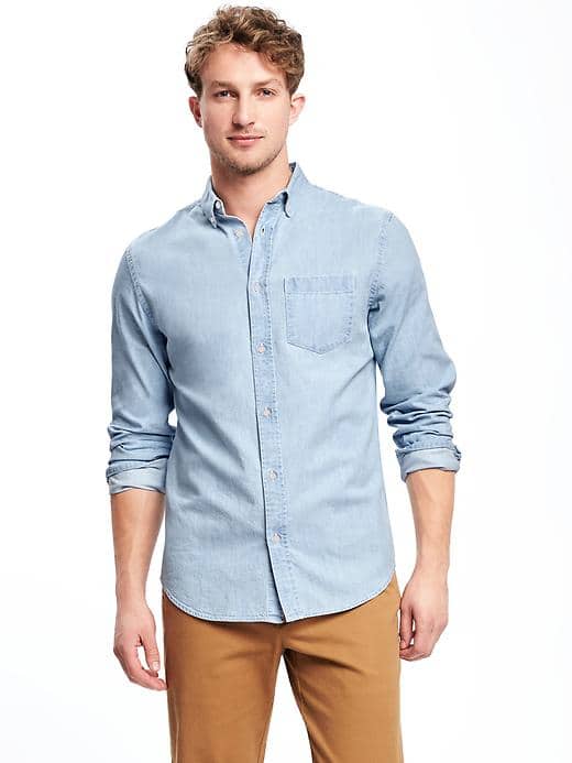 Luckily, Old Navy makes shirts in slim, and they had a chambray one on sale for $20.