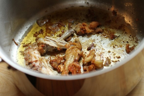 Having a little bit of raw chicken (to brown in the pan before adding water) really helps to make homemade broth more delicious.