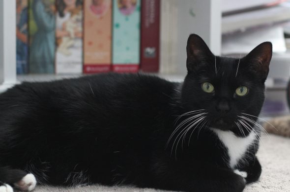 Lisey’s cat has been scratching at the bottom of her bedroom door, so we bought a cat door (this cute one!)