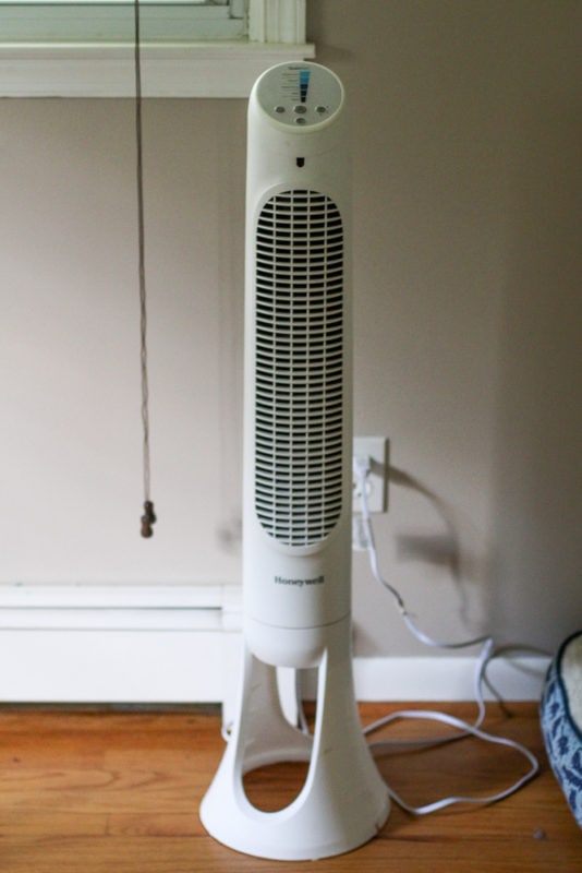 I like that this style of fan takes up so little floor space; it’s pretty unobtrusive in a bedroom.