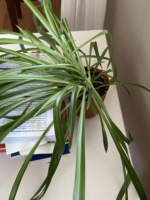 Sonia propagated a little spider plant for me last year when I moved in here, and it had definitely outgrown its original pot at this point. It was so, so top-heavy.