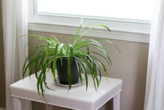 I repotted the spider plant in the new pot, and since the new pot has big drainage holes in the bottom, I needed something to protect my furniture.