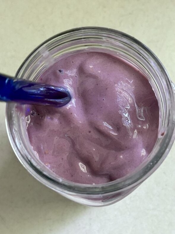 So, I made a smoothie, using some homemade yogurt, a banana, the blackberries, and some mango I’d frozen when I had too many ripe mangoes at once (no one should feel sorry for me about that. Ha.)