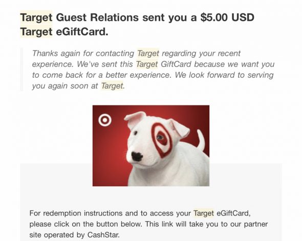 So, I hopped on the chat, and about 5 minutes later, they sent an electronic Target gift card to my email.
