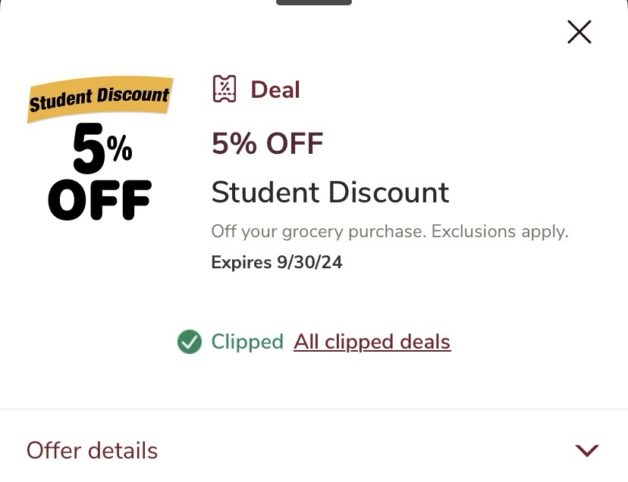 I was walking through Safeway the other night and an announcement came on the loudspeaker saying they have a student discount program.