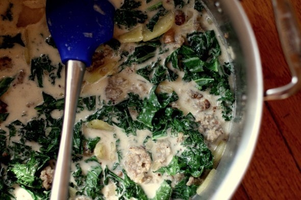 I used the rest of the kale in a small batch of Zuppa Toscana-ish soup, which also handily used up some marked-down Italian sausage, some homemade chicken broth, and some potatoes from my Hungry Harvest box.