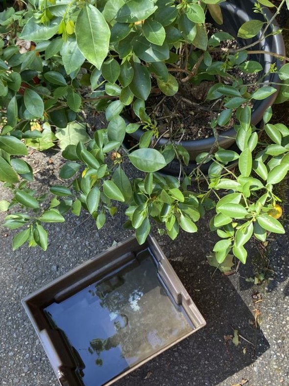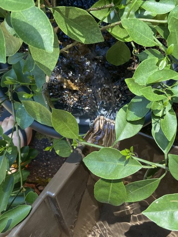 The bin holds a substantial amount of water so when it’s full, I try to take a sec to haul it upstairs and outside to dump it in my various plant pots out there.