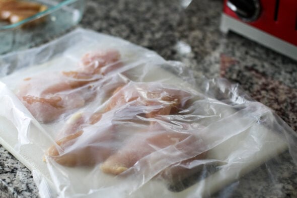 You can pound chicken with no covering, of course, but that gets a little messy.