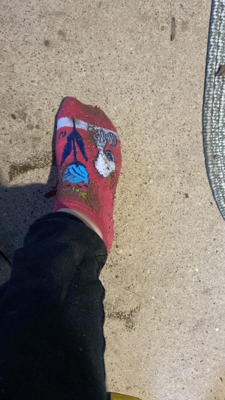 My yard’s cleanliness and my own cleanliness were inversely correlated; here’s what the inside of my shoes looked like.
