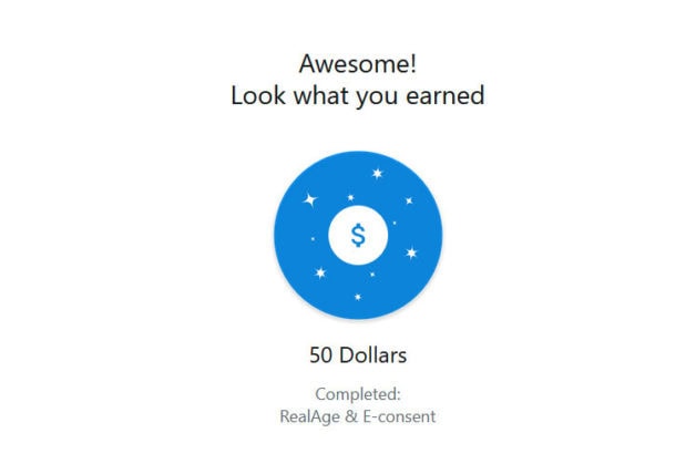 My new health insurance has a rewards wellness program, and they offered $50 just for doing a “find out your body’s age” assessment online.