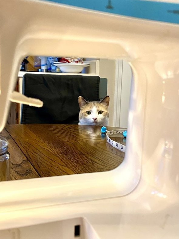 So, I cut and hemmed them, with Chiquita’s supervision.