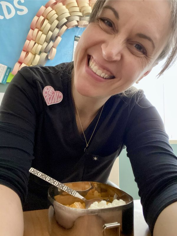 * DD wanted me to buy her a file folder for a second time this school year, since the clasp on hers broke. I said I would fix it instead, to which she was not too happy about (the horror!). And I did. I asked for a large button on my Buy Nothing group and got to work. It is now fixed, and looking good IMO.