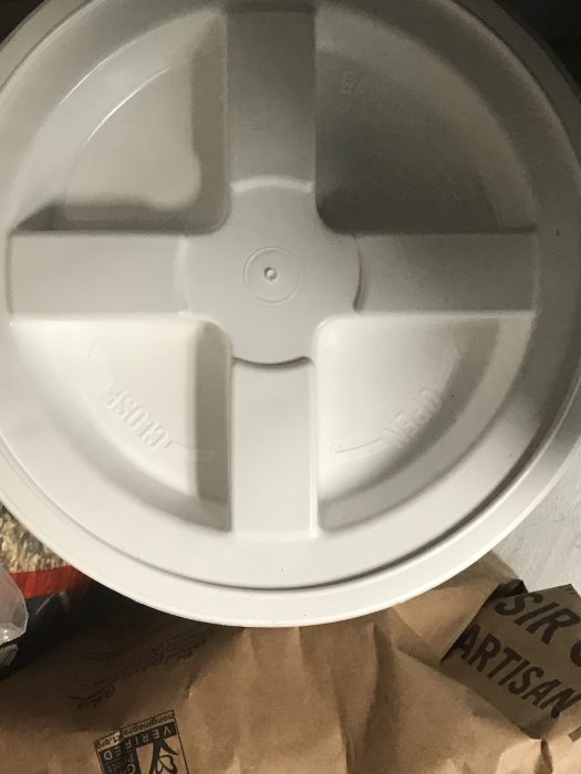 I was reading comments on an Amazon listing, though, and someone pointed out that Lowe’s sells food grade white buckets with screw lids for a fraction of the price that Amazon charges.
