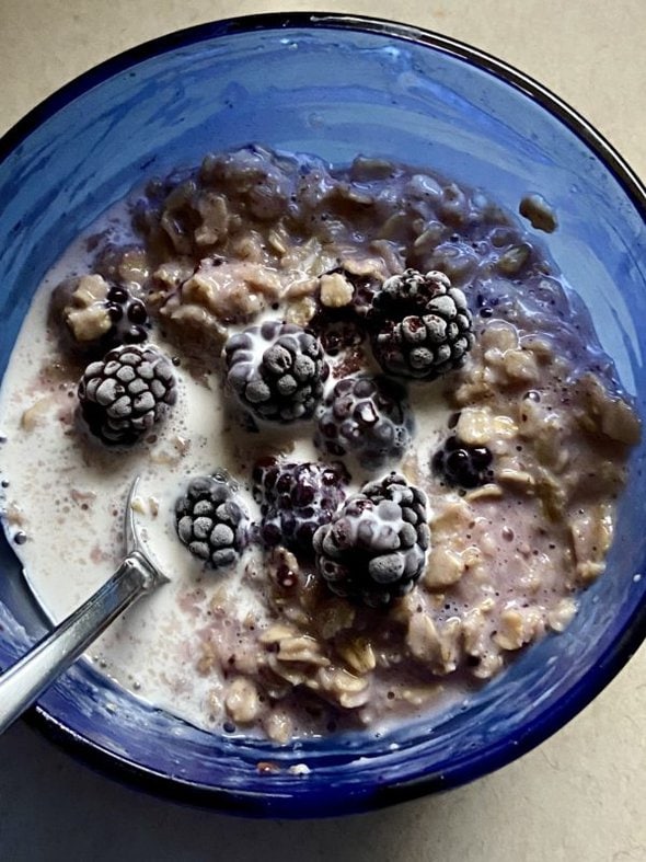 I stirred about half of the blackberries into my oatmeal yesterday, and I’ll probably use up the rest in a bowl today.
