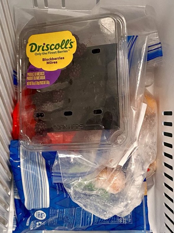 Also, before I went to Hawaii, I had thrown my container of blackberries into the freezer.