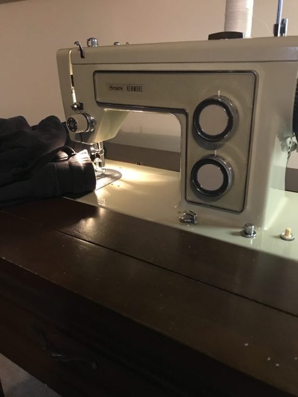 So, I got out my mom’s sewing machine (the one I learned to sew on!) and did a few quick zig-zag repairs.