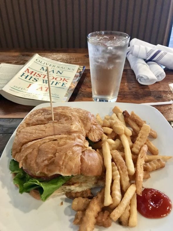 I know sometimes people feel very odd about dining out alone, but I just brought along one of my library books and happily ate my dinner in my booth.