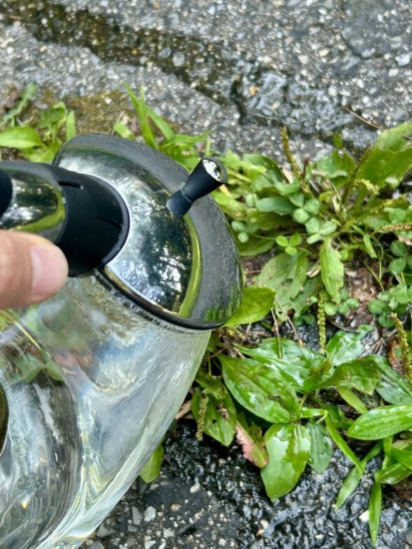 So, I heated up some water in my trusty electric kettle, and slowly poured it over the weeds.