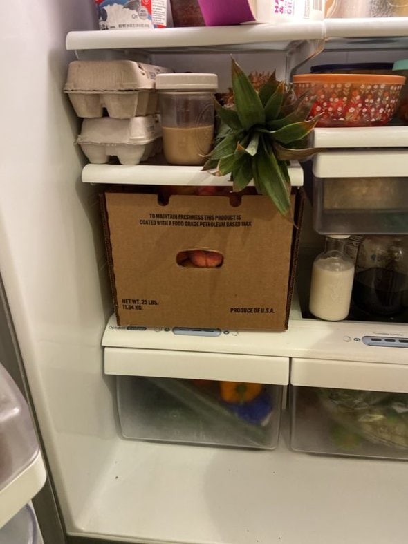 I happened to find this box right before I had two days of 12-hour shifts at the hospital so…I just shoved the whole box in the fridge until I had time to deal with the peaches. 😉