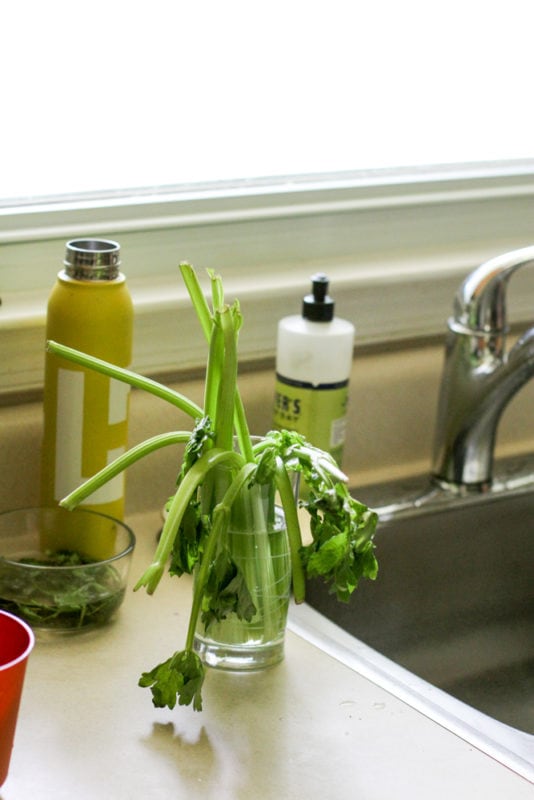 It’s entirely my fault that this celery had gone limp; it came naked in my Hungry Harvest box, and I lazily threw it in my fridge with no wrapping, even though I know you are supposed to wrap celery in aluminum foil to keep it fresh.