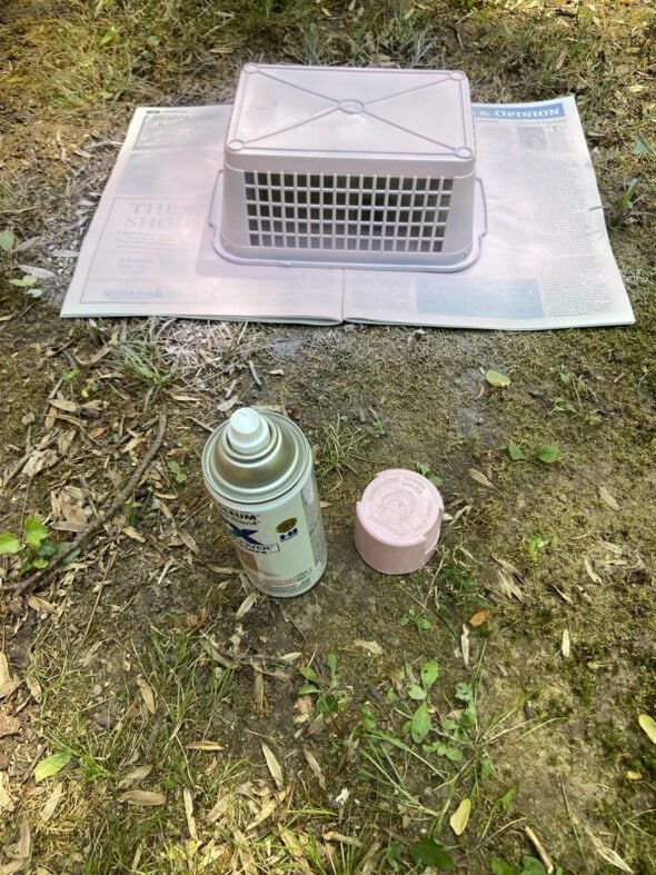 She uses this old green bin to hold items in her bathroom, but she didn’t love the green color.