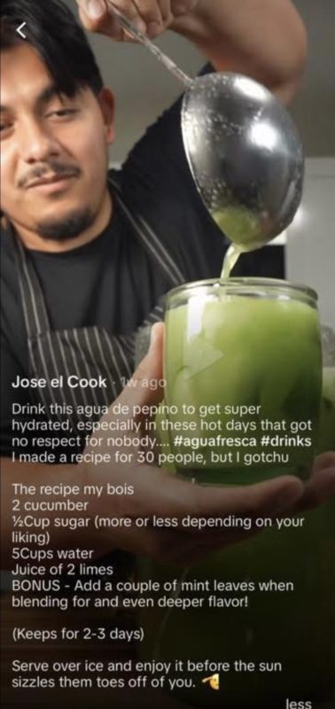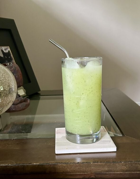 Cucumber:I love it in salad, as a drink? I would have to stretch to try that recipe.