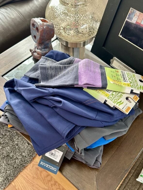 The sizing options were a little limited, but I managed to find three sets that fit, plus two pairs of compression socks. And my total was $42.