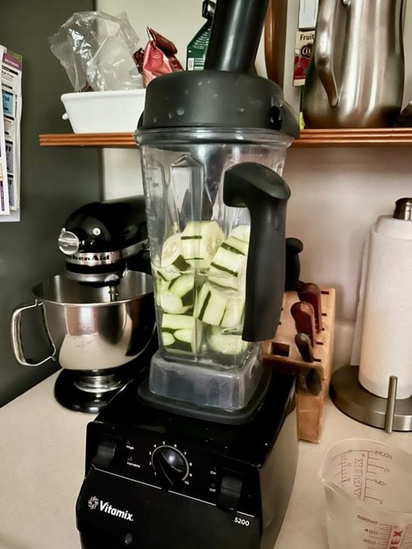 And since my VitaMix is a beast, I didn’t even remove the big seeds these cucumbers had; they got all nicely blended up.