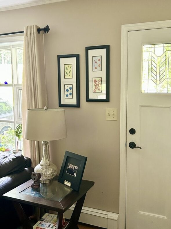 Sonia initially put some watercolors of hers in the frames and kept them up, but eventually, she switched to some other wall decor, and she brought the frames over to me.