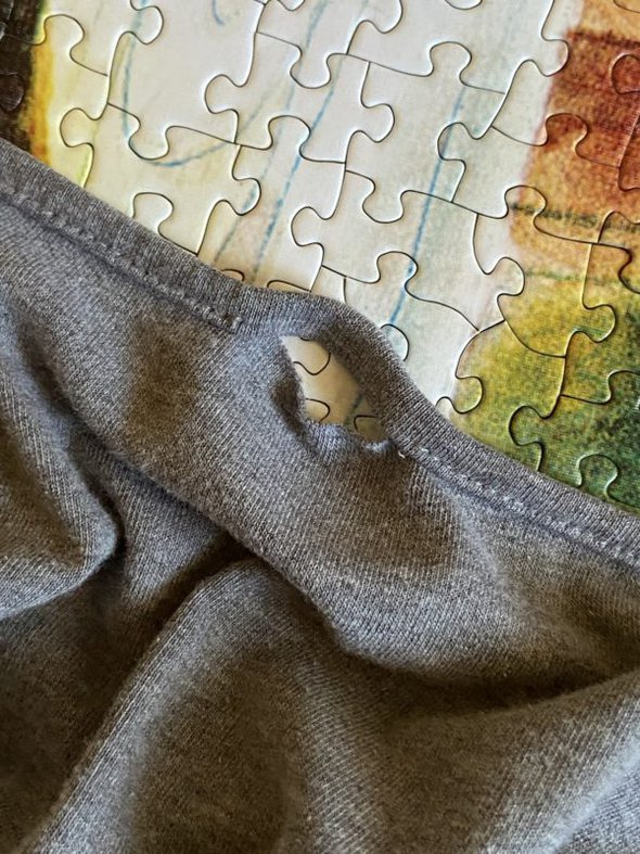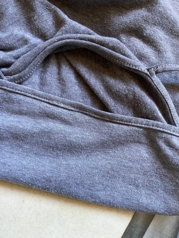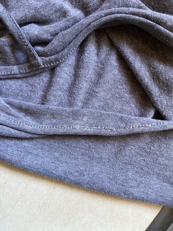 She’s had this little gray tank top since she was 15 or so, and the stitch around the neckline was coming undone.