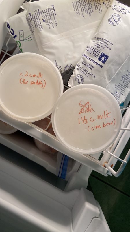 And then I froze the rest of the milk in two containers. I know, I know…I’m trying to clean out my freezer.
