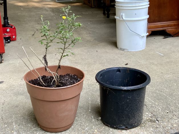 Someone on my Buy Nothing group put out an, “I’m moving and you can come take anything from this pile of stuff in my front yard.” announcement, and I saw a large-ish plant pot in the picture. So, I popped in and picked it up, and now my mum is in a better pot.