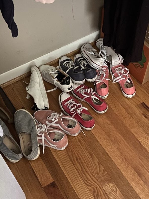 I don’t have any specific shoe storage in my closet, so my shoes have just been sitting in a somewhat disorganized fashion on the floor.