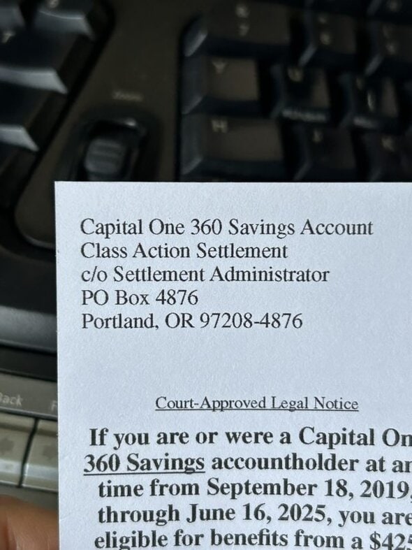 Apparently, there’s some suit against Capital One 360 that I qualify for. However, it sounds like the payouts will be small and if it’s less than $5, they won’t mail you a check.