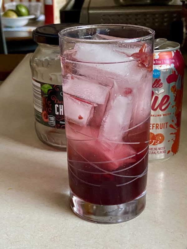 I finished up a jar of sour cherries from Aldi, and I mixed the leftover juice/syrup in with some sparkling water. Tasty!