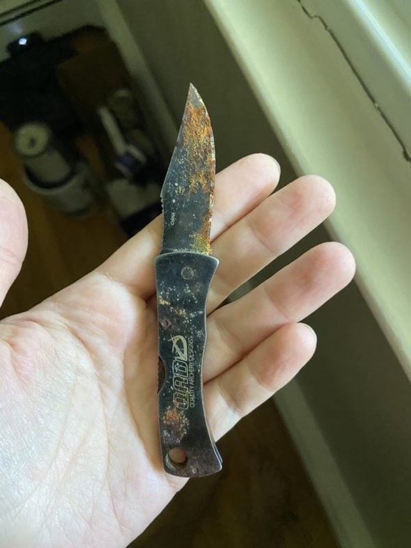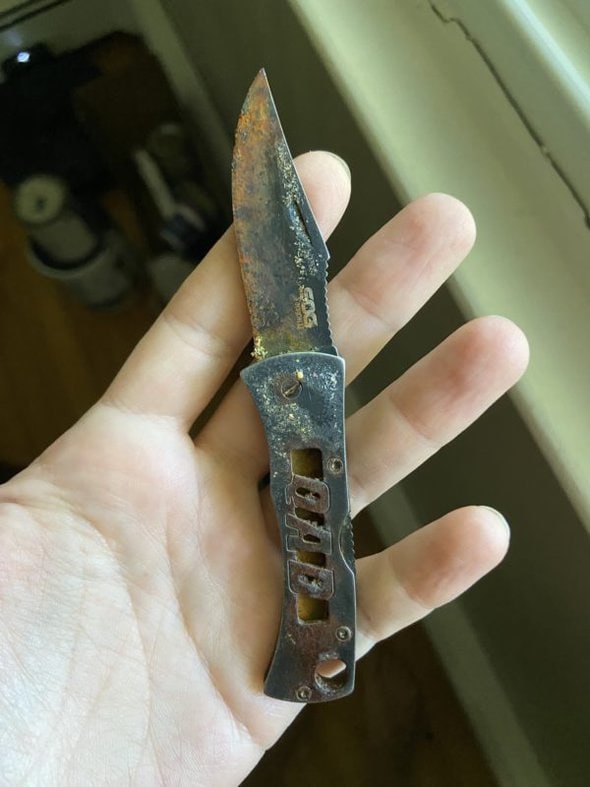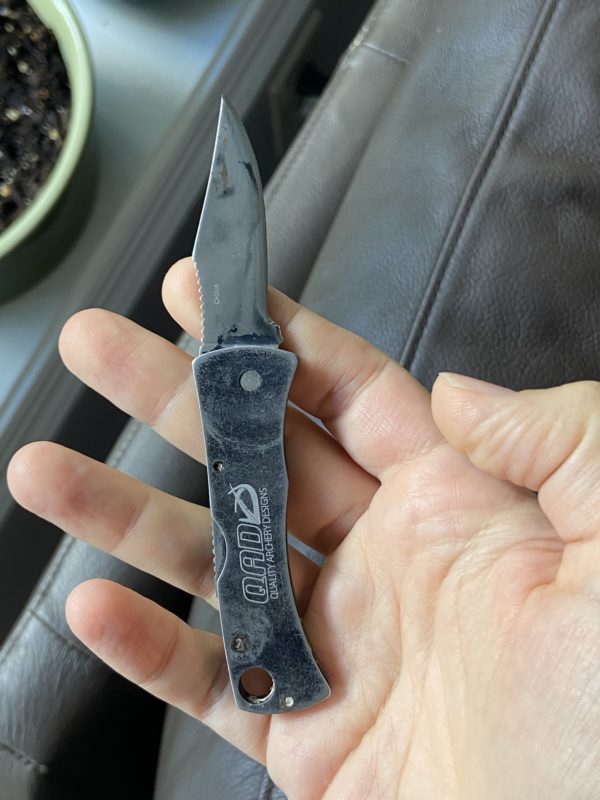 (He took one look at the knife blade and was like, “What happened to this thing??” Ha.)