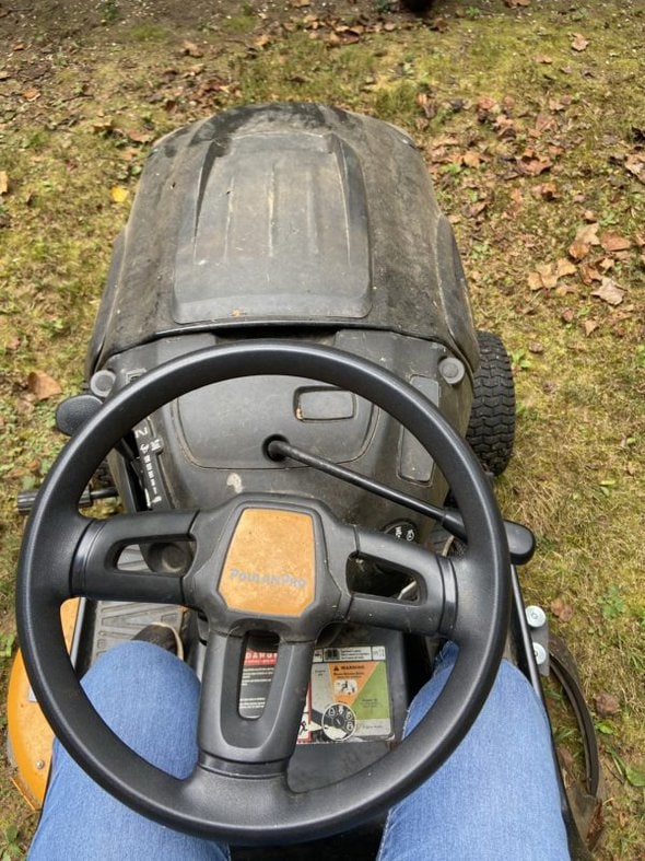 My house sits on about 2/3 acre, and luckily, my dear neighbor lets me borrow her riding mower when I need to mow.