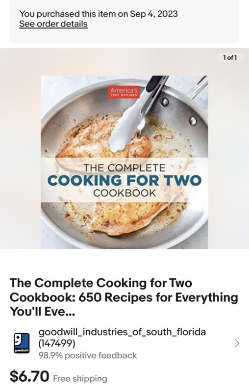 I saw that America’s Test Kitchen had published a cooking-for-two cookbook at some point, and I hopped over to my library website to see if I could put a hold on it.