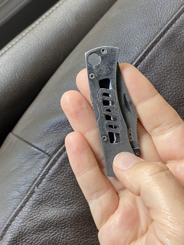 I thought he’d charge me a few dollars, but he said he sharpens pocket knives for free all the time. So this ended up being even more frugal than I’d anticipated.